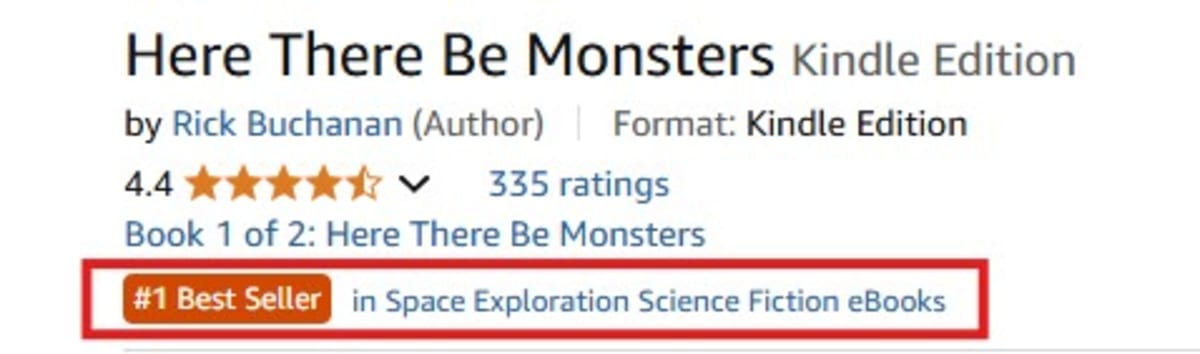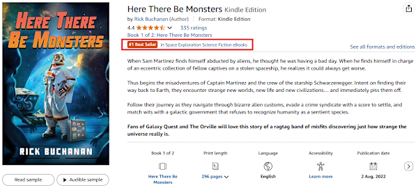 Thank you to all the fans in the UK who made Here There Be Monsters an Amazon #1 Bestseller in the Space Exploration Science Fiction eBooks and First Contact Science Fiction eBooks categories. It currently ranks #12 against ALL Science Fiction eBooks in the UK.